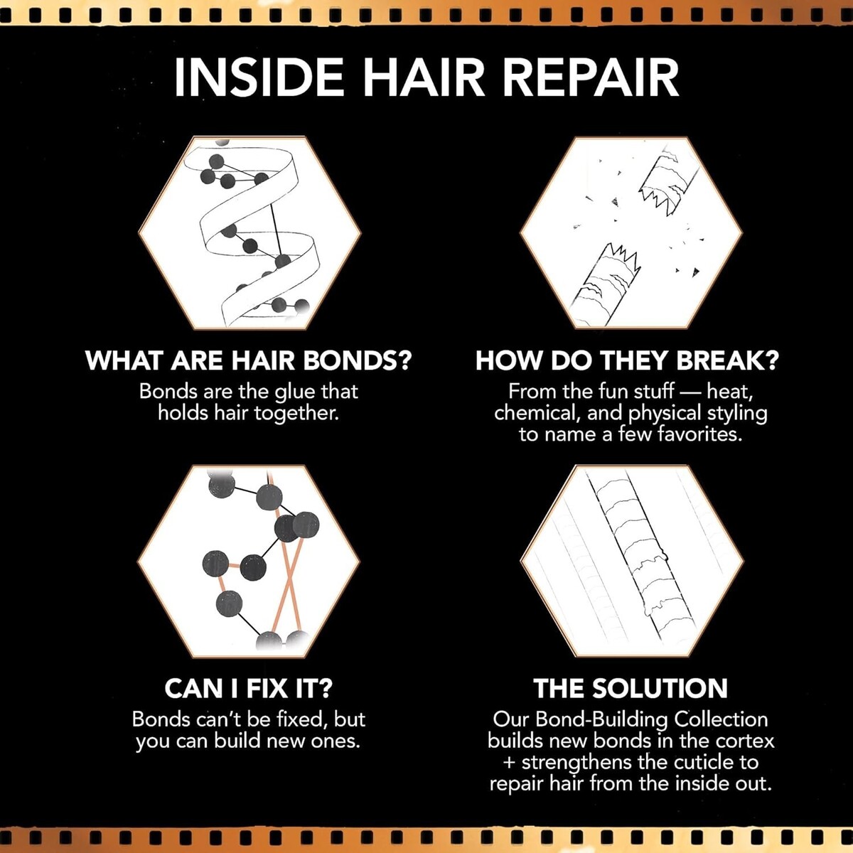 Massage Bond-Building Repair Shampoo throughout damp hair and rinse. After cleansing, apply Bond-Building Repair Conditioner and leave on for 1?2 minutes. Rinse. Apply Bond-Building Repair Styling Cream to damp hair before blow-drying or air-drying.