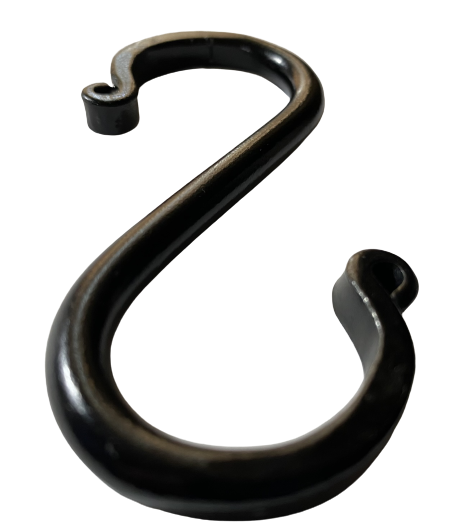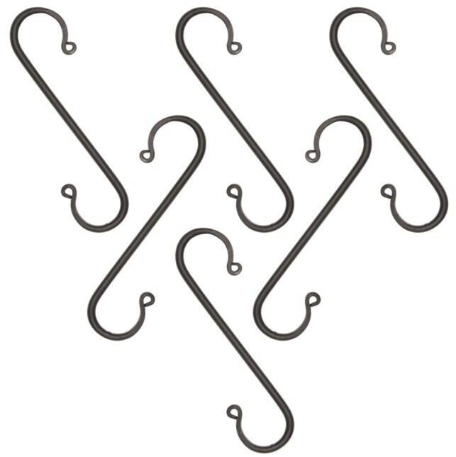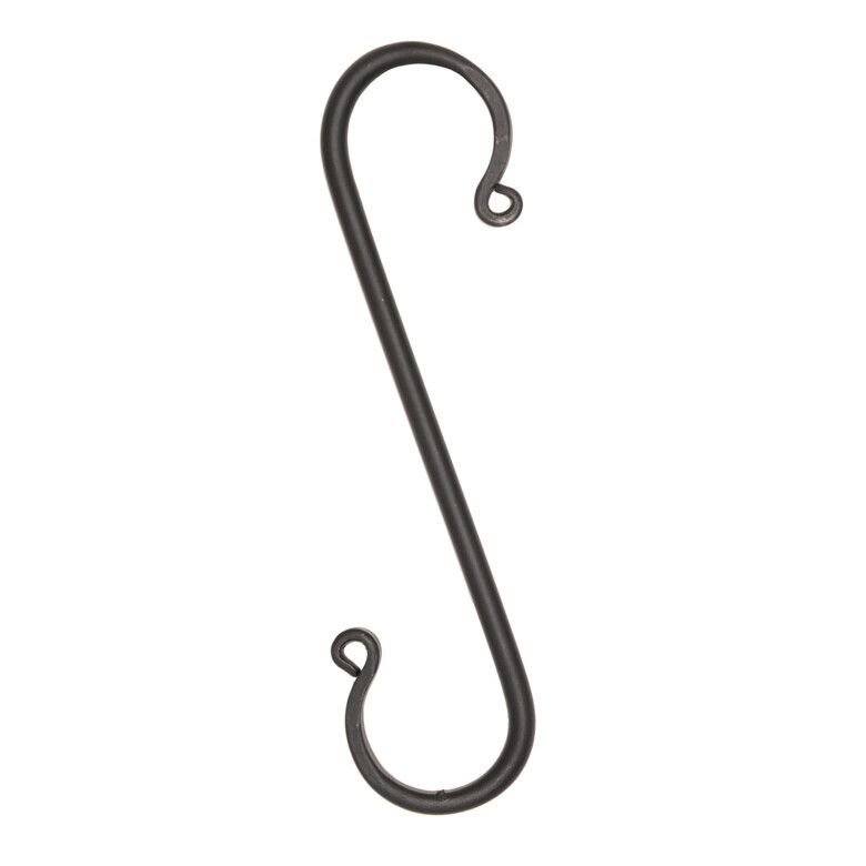 With primitive styling and a functional design, these large hand forged, heavy duty wrought iron hooks are perfect for a variety of needs. Classic "S" design with distinguished scrolls on each hook end. Use them to hang pots and pans in the kitchen, potted plants on the patio, porch or in the garden. They are also great to use in the garage or workshop, and the classic satin black finish works with anything.