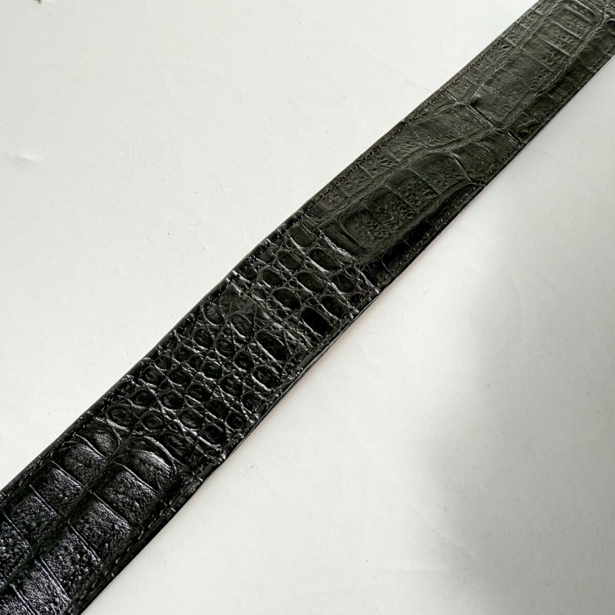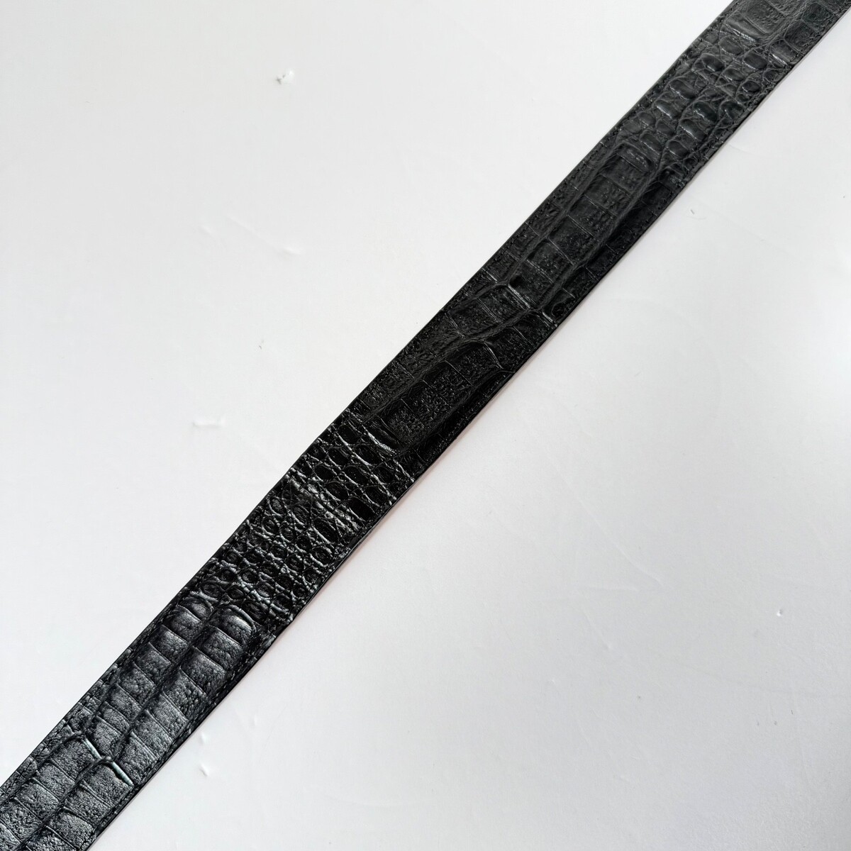 These are Rod Patrick Bootmakers Mens Belts in Black Caiman Leather that is 1.5" wide with a Taper. This is made in Mexico of Genuine Alligator Leather.