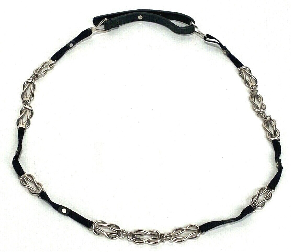 Fashion Chain Belt-Fabric, Metal, Faux Leather - Black/Silver - 34-36 in-Stretch