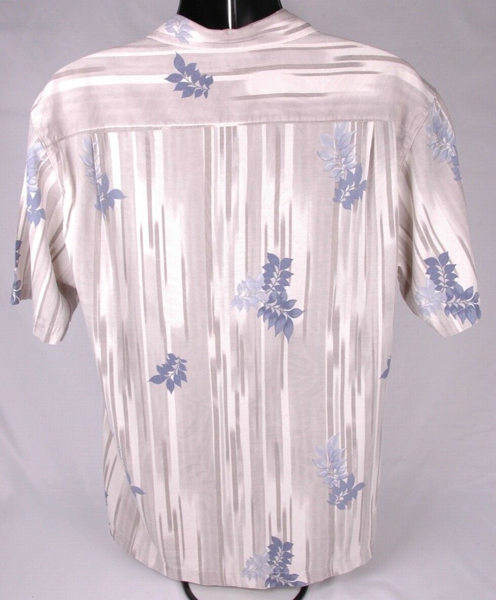 TOMMY BAHAMA Hawaiian Shirt-Blue Grey-Button Up-100% Silk