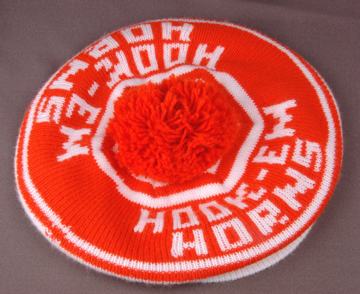 Vtg Texas University Tam o Shanter Hat-Hook-Em Horns-Orange-NCAA-Knit-Retro-Cool