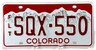 Colorado License Plate - SQX-550 - Fleet FLT - Red - Expired - 1