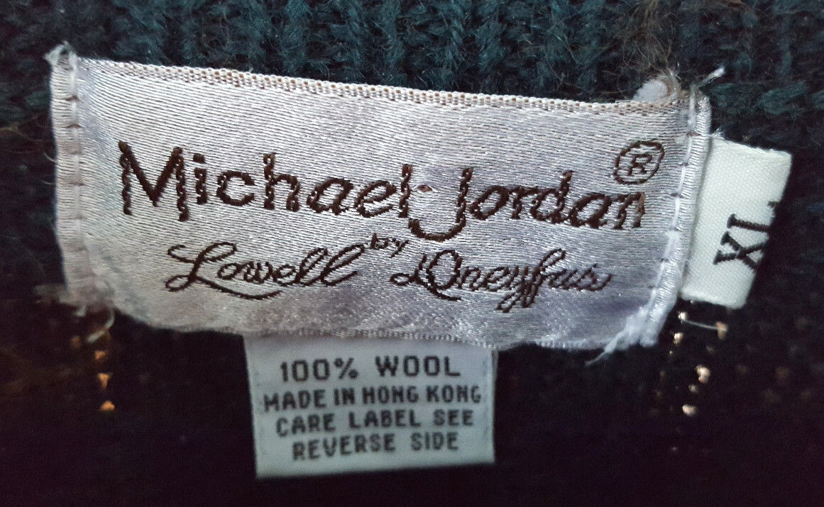 Vtg MICHAEL JORDAN by Lowell Dryfus Sweater-XL-100% Wool-Green-Geometric-Winter