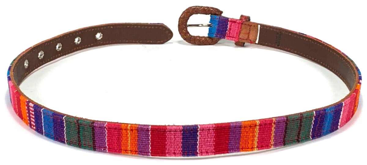 Fossil Women's Rainbow Leather Brown Western Native Bohemian Buckle Belt Sz S