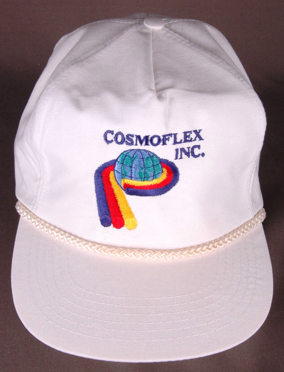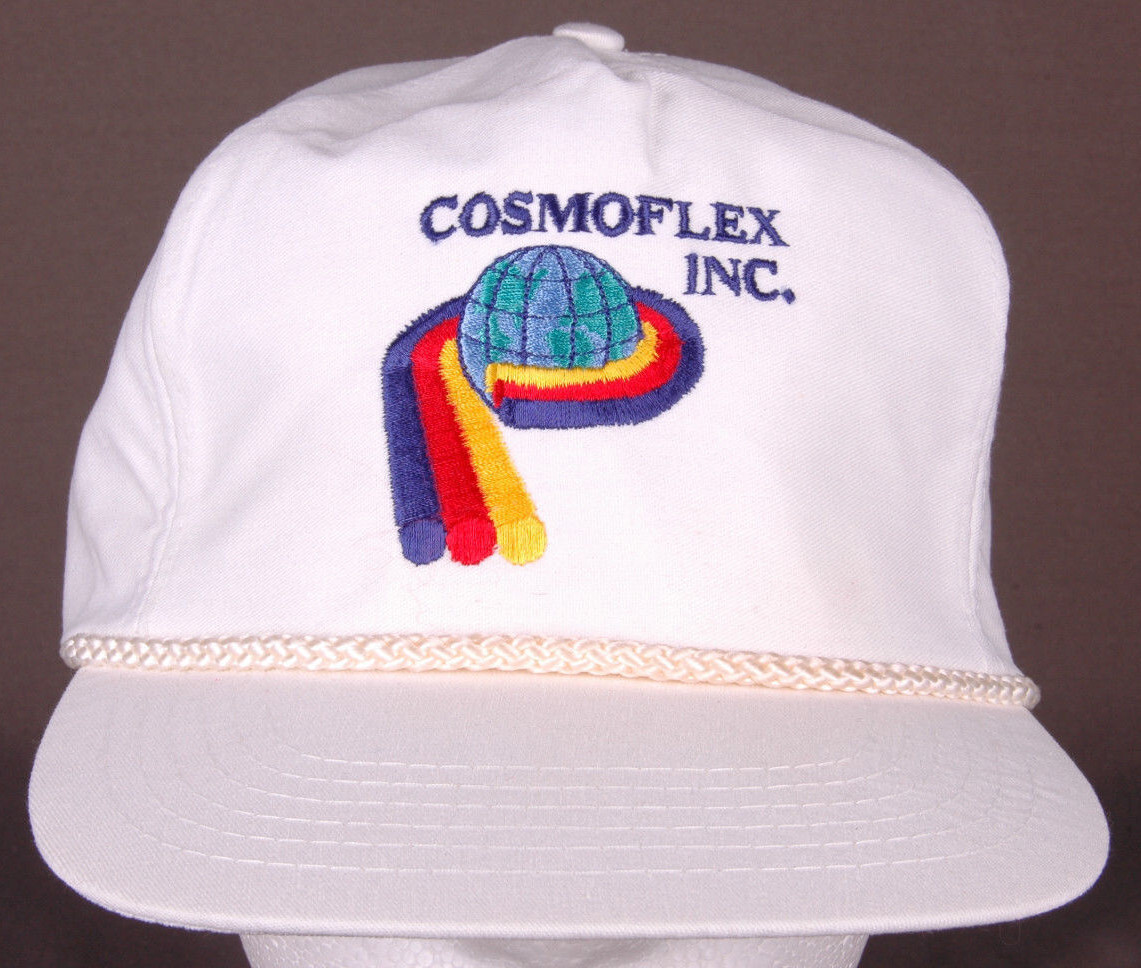 Vtg Cosmoflex Inc Hat-White-Zipback-Rope Bill-Trucker-Rubber Plastic Factory