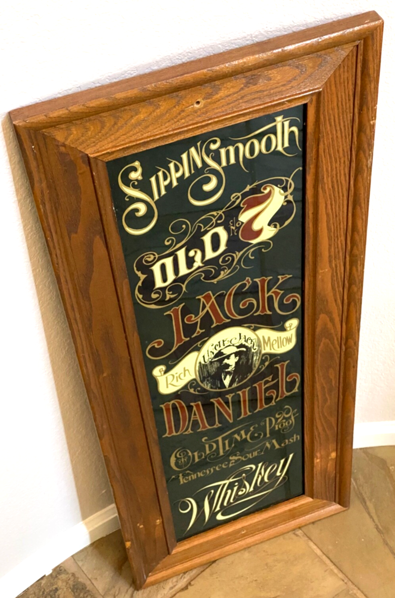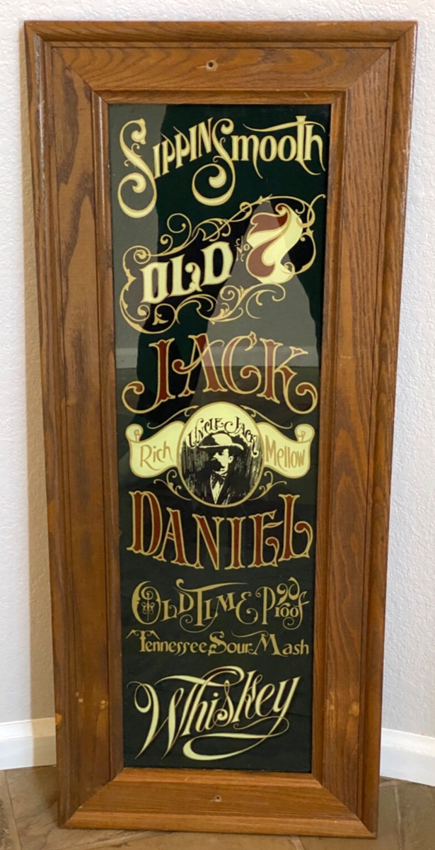 Vtg Jack Daniels Green Glass Sign- Sippin Smooth - Tennessee Mash - 14.5x35.5"