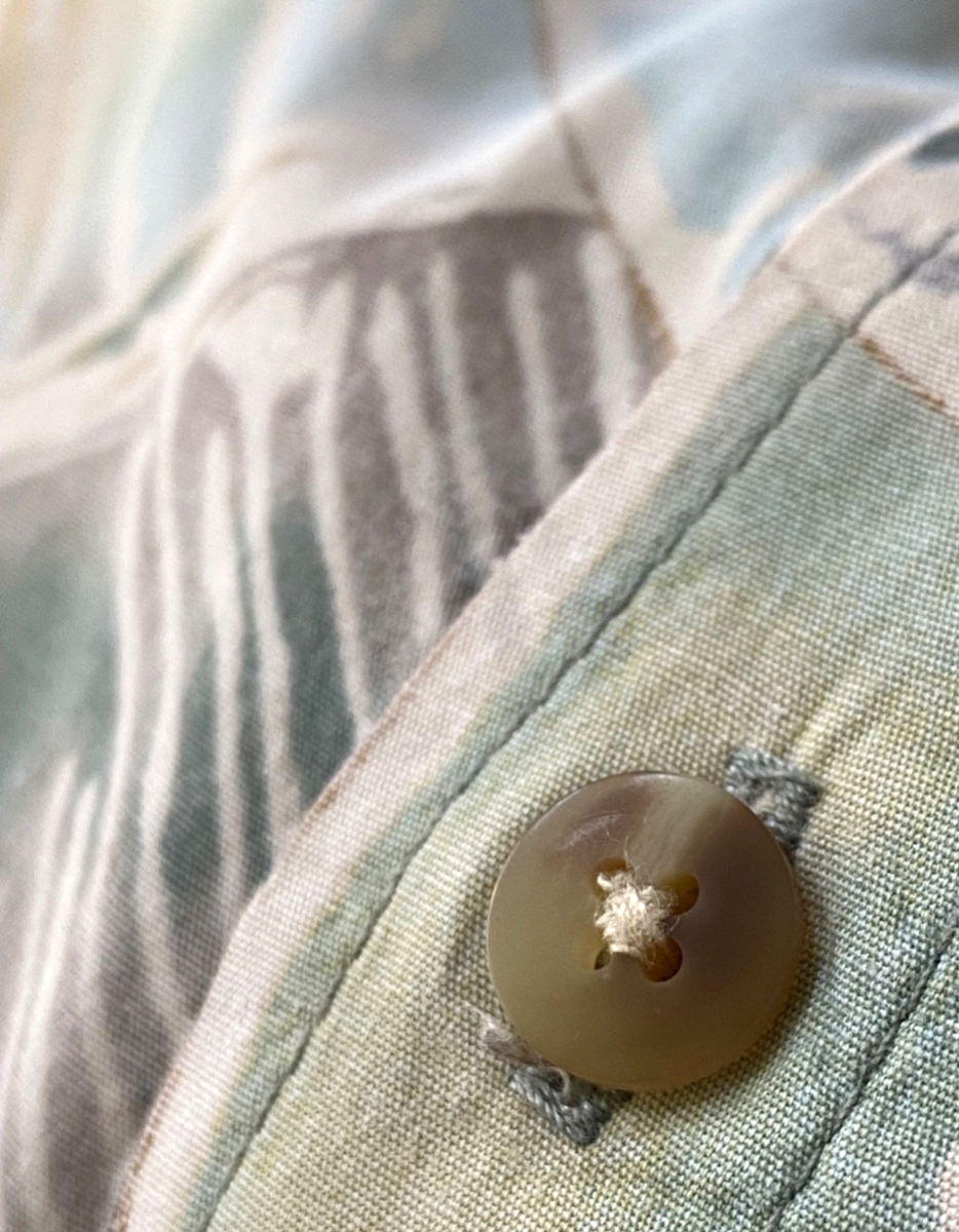 Kahala Hawaiian Pullover Shirt XL-1/2 Button-Palm Leaf-Pastel-USA-Reverse Print