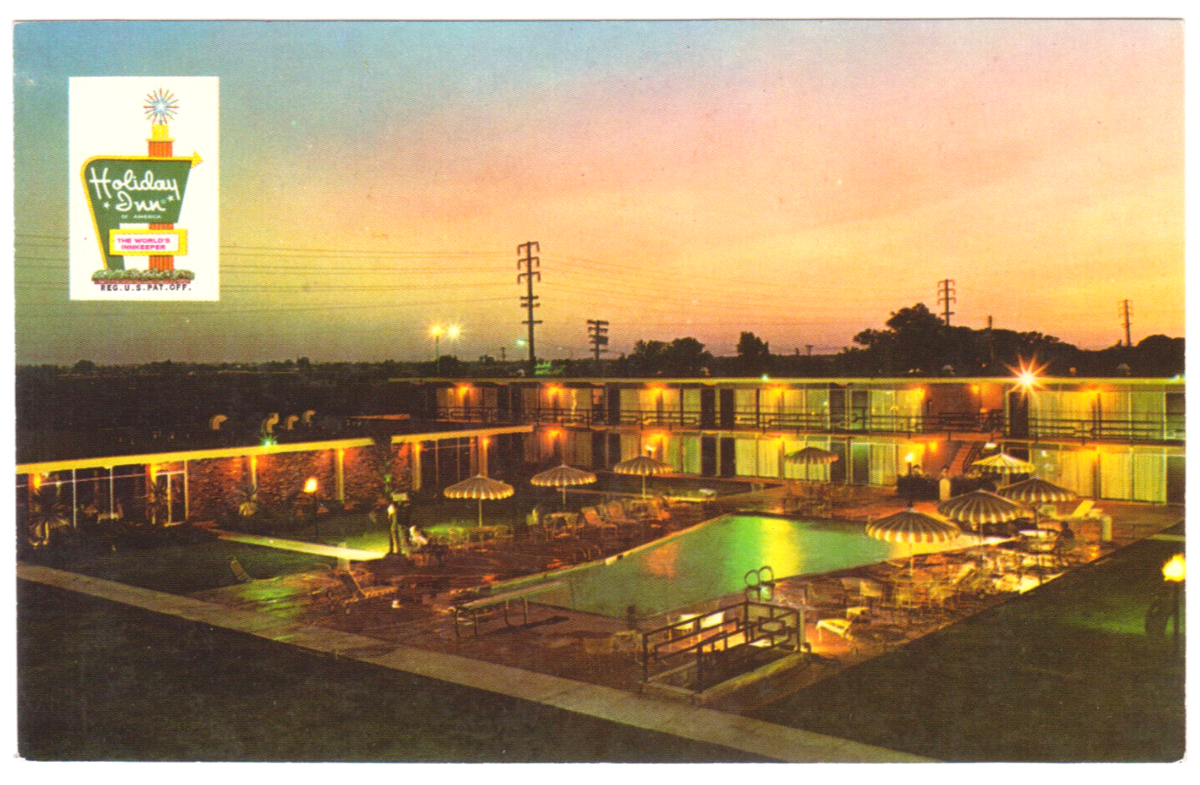 Vtg Postcard-Holiday Inn-Fresno CA-Sunset-Swimming Pool-99 Freeway-Chrome-CA6