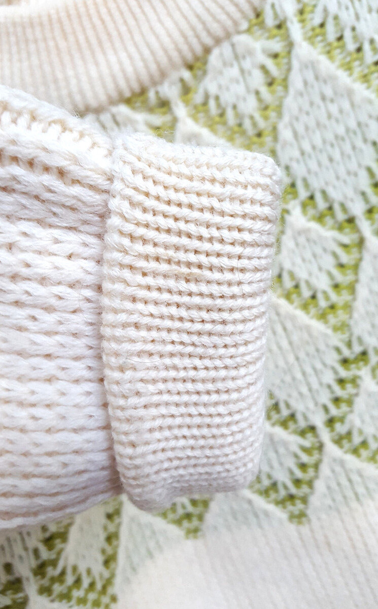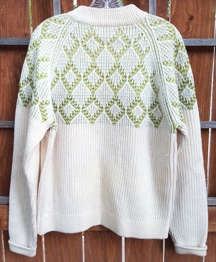 Vtg SAXONY Sweater-L-100% Virgin Wool-White/Green-Warm Hip Nice-Winter Weather
