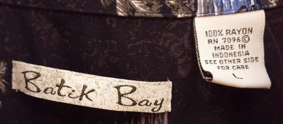 Batik Bay Short Sleeve Shirt-L-Village Scene-Button Up-Rayon-Hawaiian-Black-Pkt