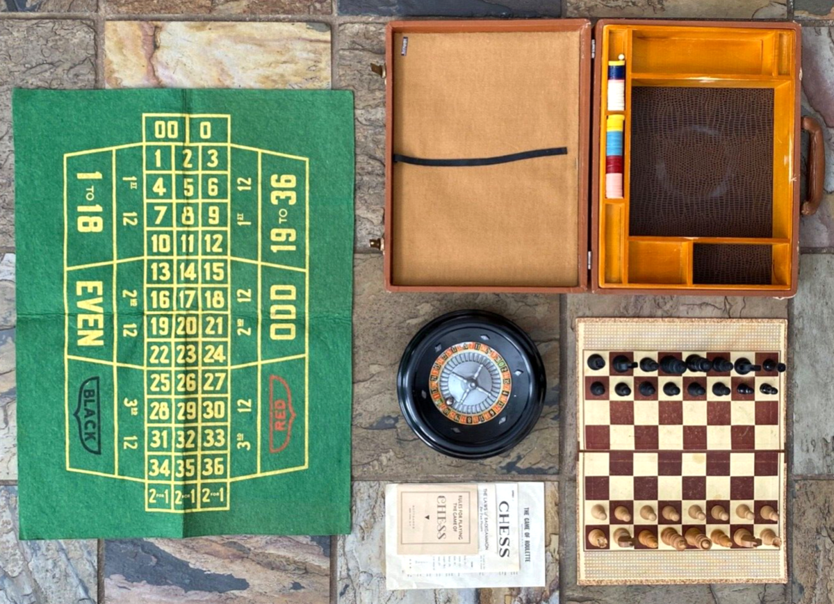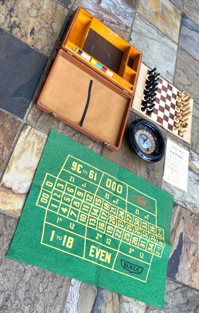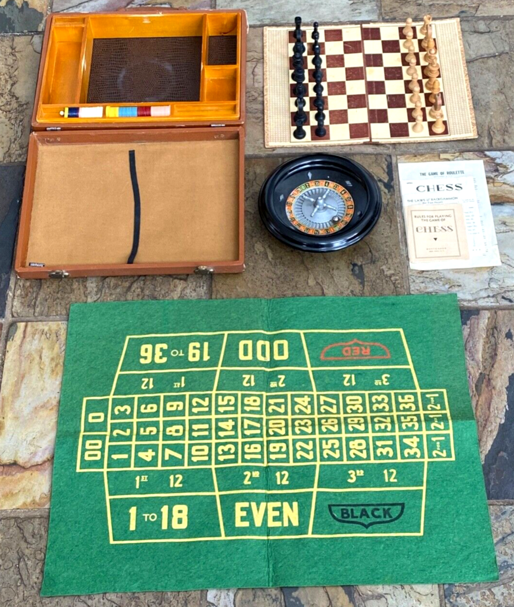 VTG ROTTGAMES GAMING SET Chess Checkers Roulette Backgammon w Original Case