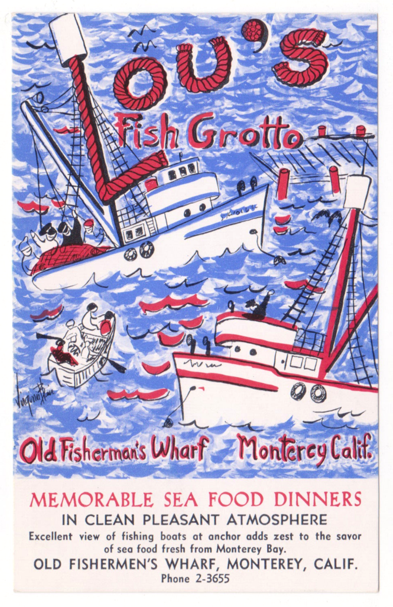 Vtg Postcard-Lou's Fish Grotto-Fisherman's Warf-Sea Food Restaurant-Chrome-CA6