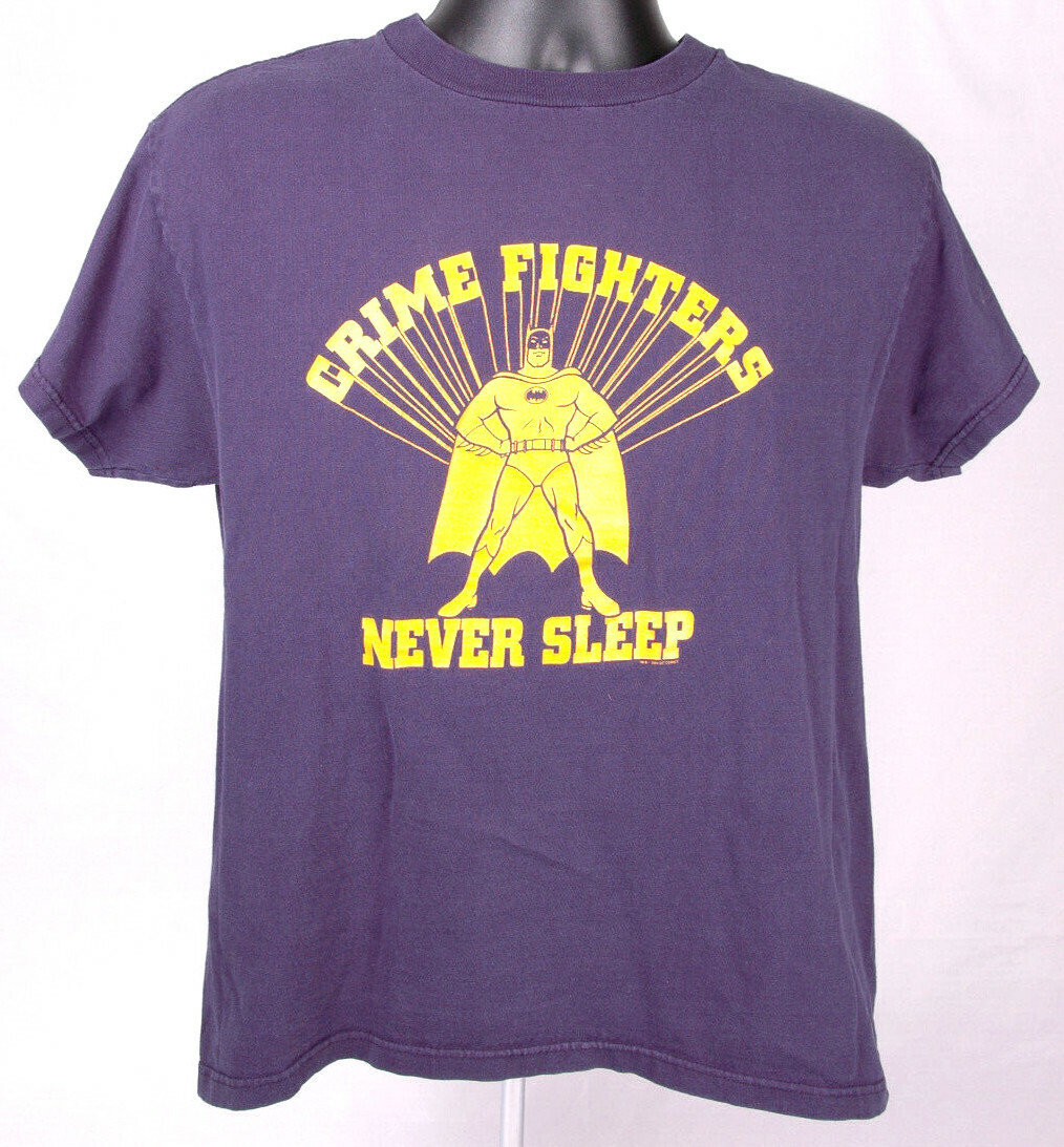 BATMAN T Shirt-Crime Fighters Never Sleep-Warner Bros-M-Blue-Super Hero-DC Comic