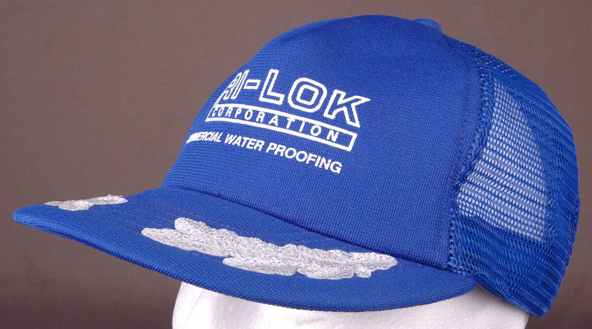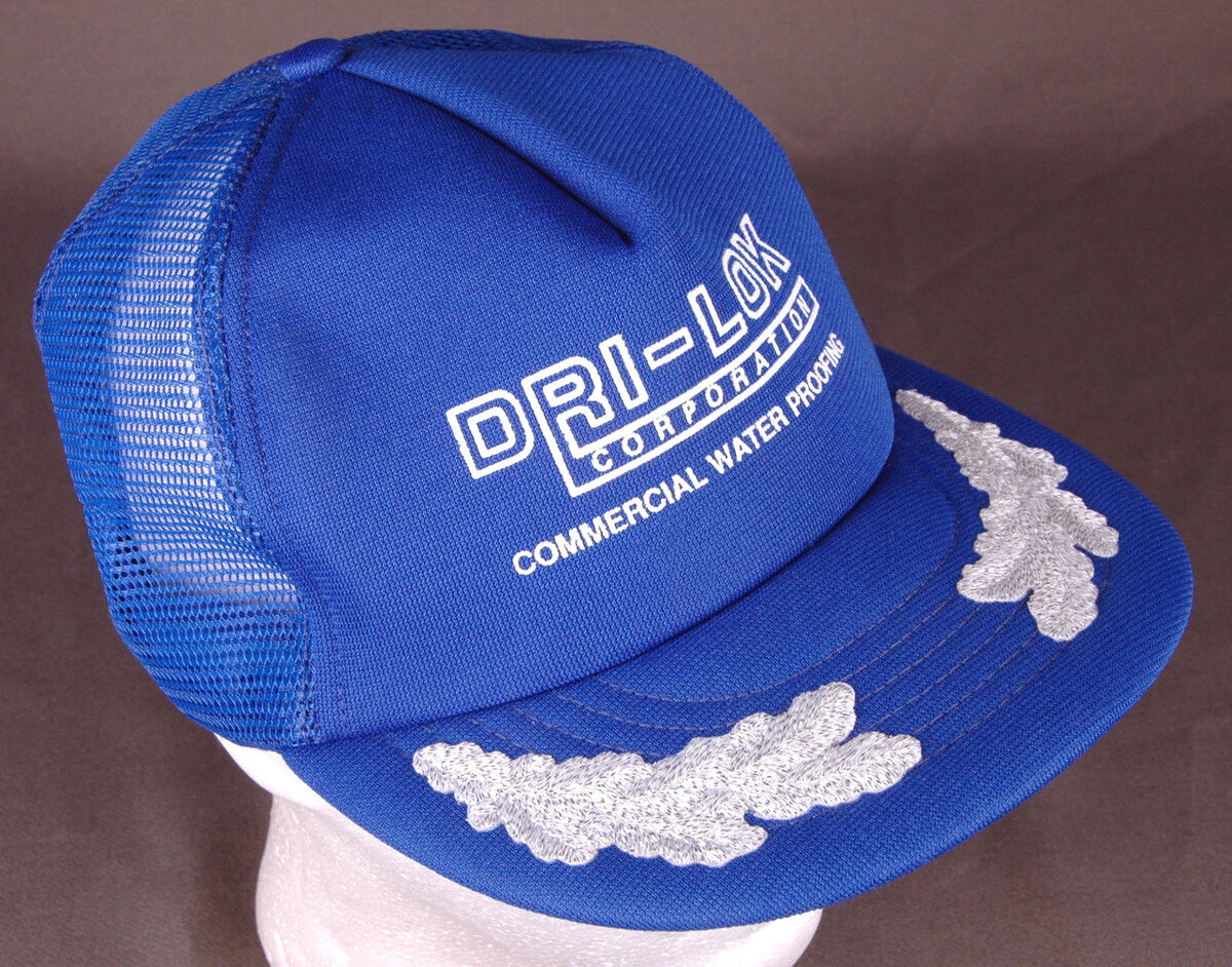 Vtg DRI-LOK Commercial Water Proofing-Trucker Hat-Leaf Bill-Blue-Mesh-Snapback