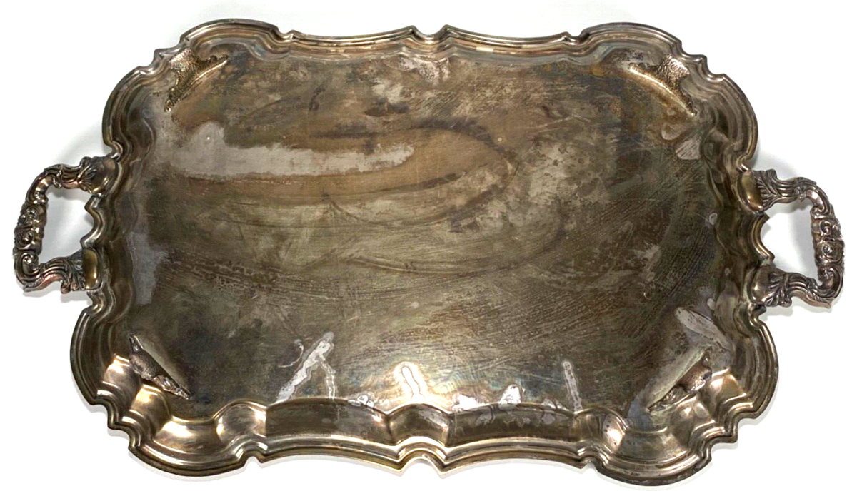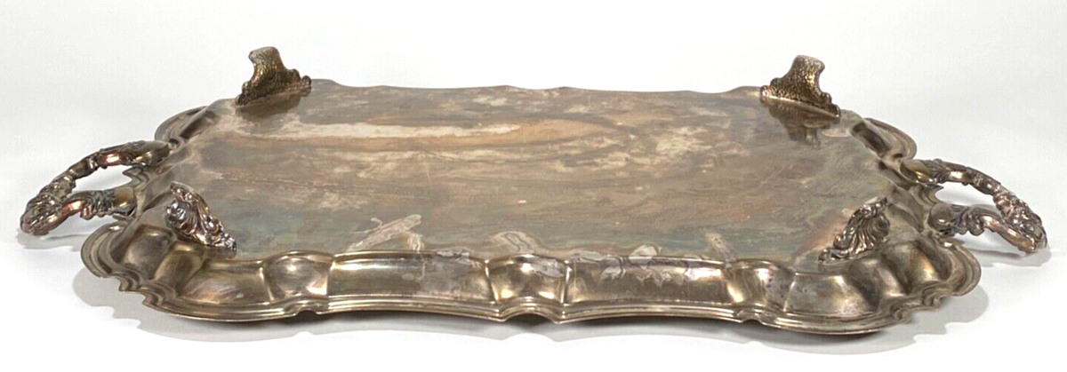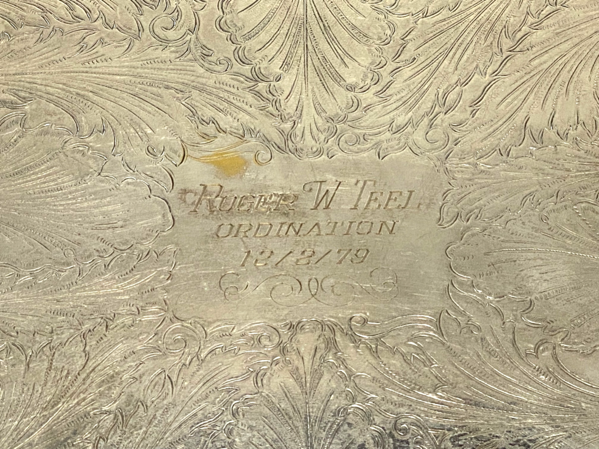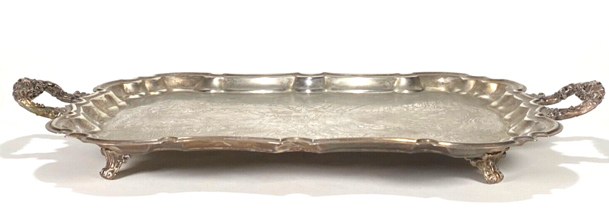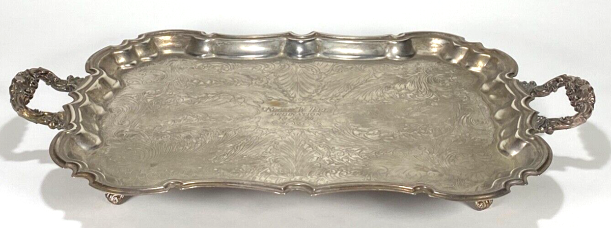 Leonard Silver Footed Serving Tray w Handles-Engraved - 18.75 x 13.75" + Handles