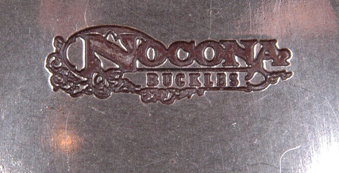 NOCONA Belt Buckle-Rodeo Western Bull Cowboy-Stamped-Vtg-Silver Tone