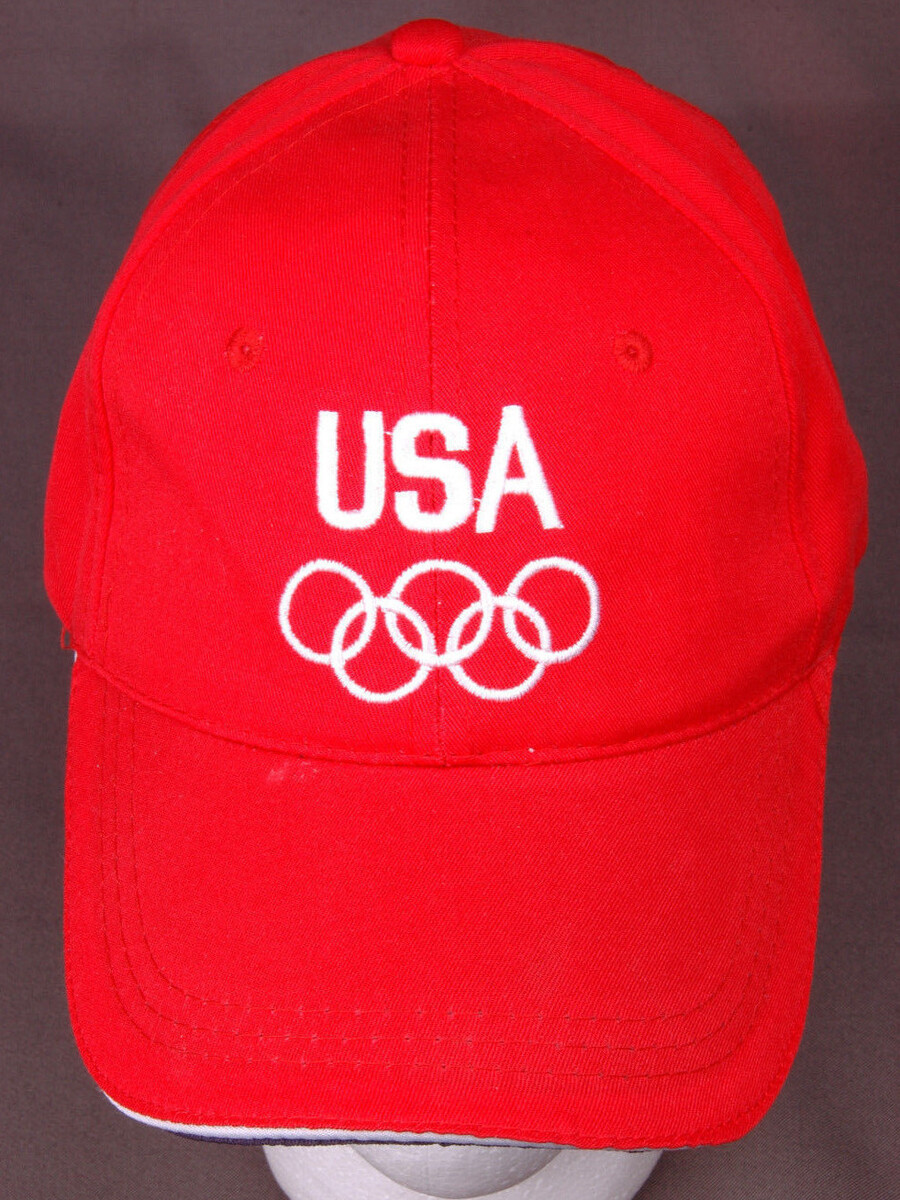 Olympics Team USA Hat-Red-Vintage-Baseball Cap-Embroidered-5 Rings-Clean-Hook/Lo