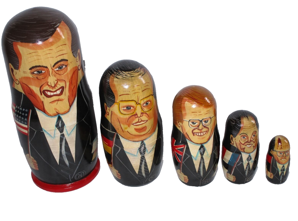 Political Nesting Dolls ~ Bush, Mitterrand, Kohl, Major, Gorbachev RARE