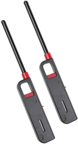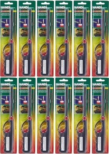 The multi-purpose lighter no one should be without. Whether you're heading to a sporting event, camping in the mountains or grilling at home, this Multi-Purpose Lighter is an essential tool. Its long, durable metal wand is ideal for grills, fire pits, lanterns and candles. The Multi-Purpose Lighter also comes with a visible fuel supply window. Put an end to burning your fingers! Refillable butane lighters are perfect for lighting candles, fireplaces, and grills... and the long-reach barrel keeps your hands away from the flame. Plus, each has a lever to adjust the flame, a large fuel capacity, and a fuel-level viewing window. 10 " long-reach butane lighters with black and red plastic handles.