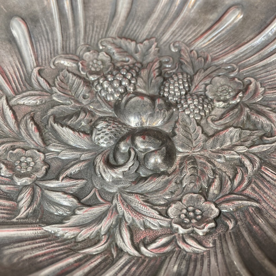 Kirk Stieff Silver Plate Footed Repoussé Fruit Berry Bowl 1723 c.1950-1970 9.25”