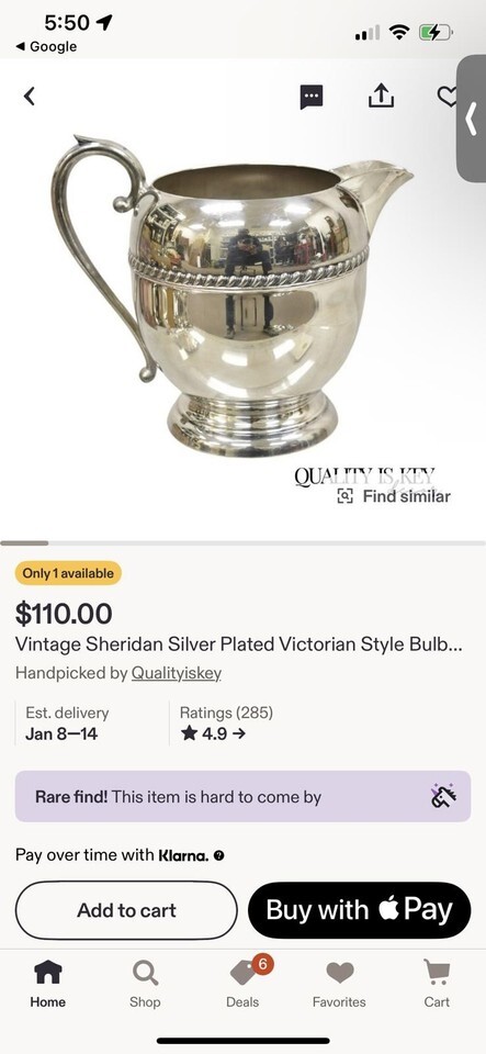 Vintage Sheridan Silver Plated Victorian Style pitcher