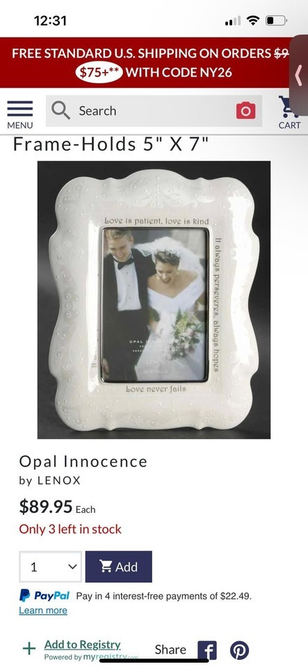 Lenox Opal Innocence Love Is Patient 5x7 and 50 similar items
