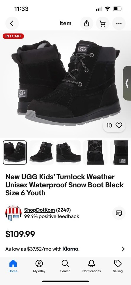 UGG Kids' Turnlock Weather Unisex Snow Boot SZ 12 Youth