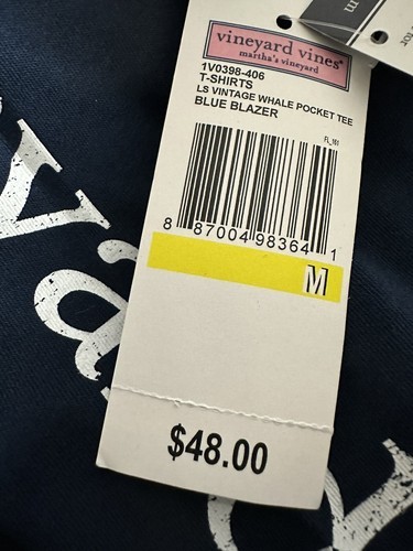 Vineyard Vines Men’s L/S Vintage Whale Pkt Tee.Blue Blazer.Sz.M.NWT.MSRP$48.00