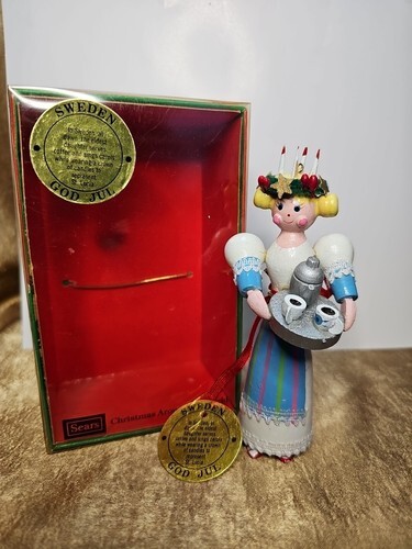 Vintage 80s Sears Roebuck Wooden Ornament Christmas Around The World Sweden