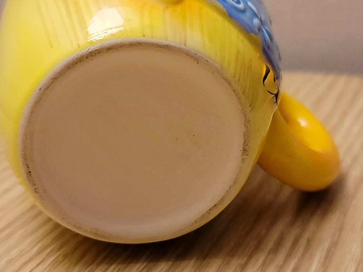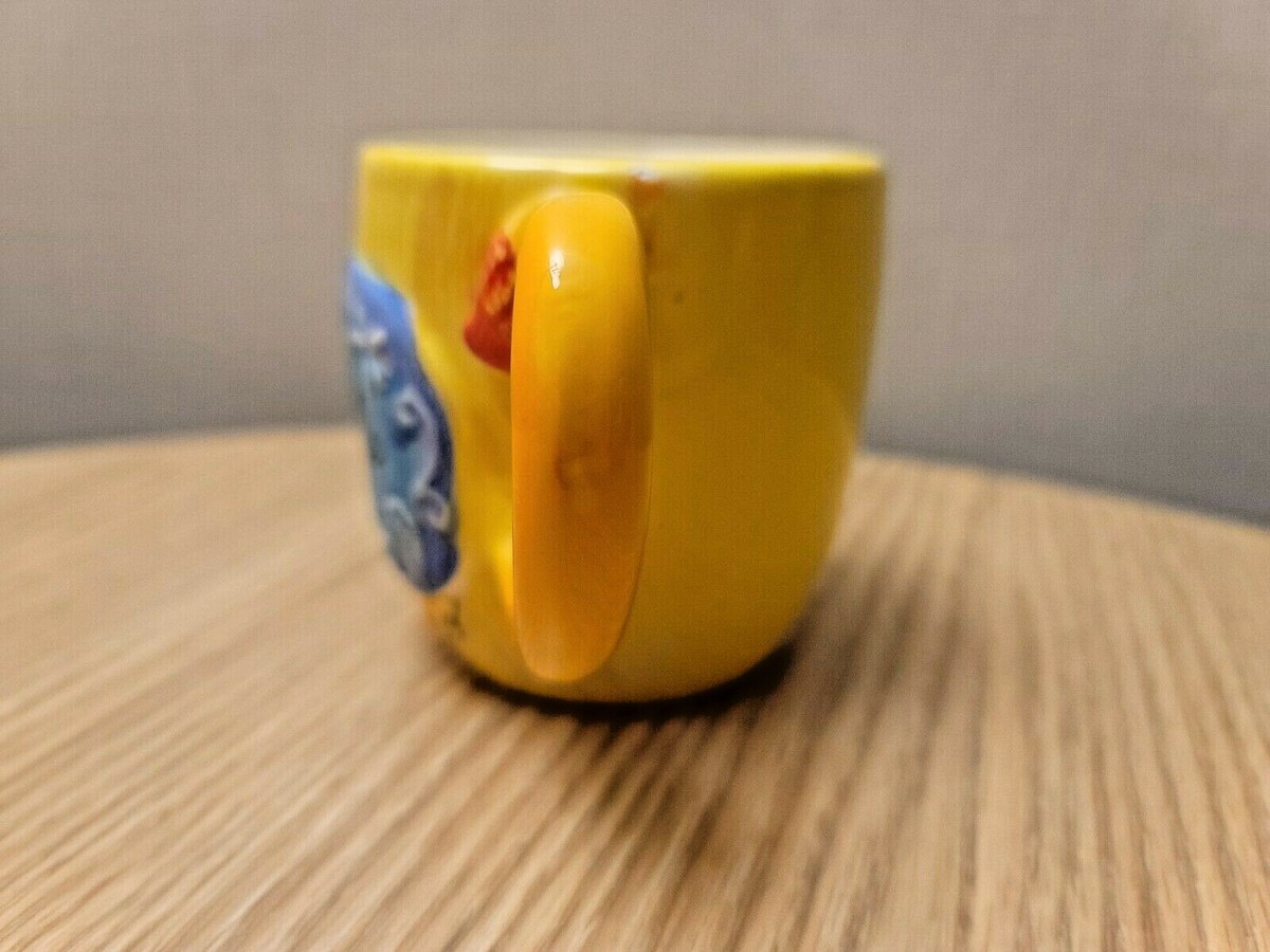 Vintage Anthropomorphic Japan Lion Ceramic Mug Cup Yellow Blue Red Kitschy