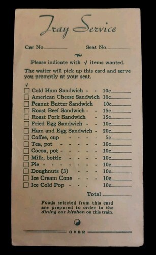 In The Dining Car: Tray Service Menu