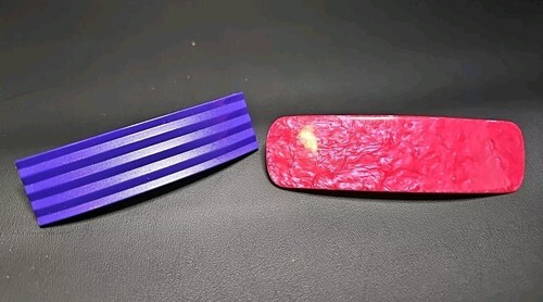UP FOR SALE: Vintage Set of Large Acrylic Plastic Hair Clips Barrettes Made In France Purple