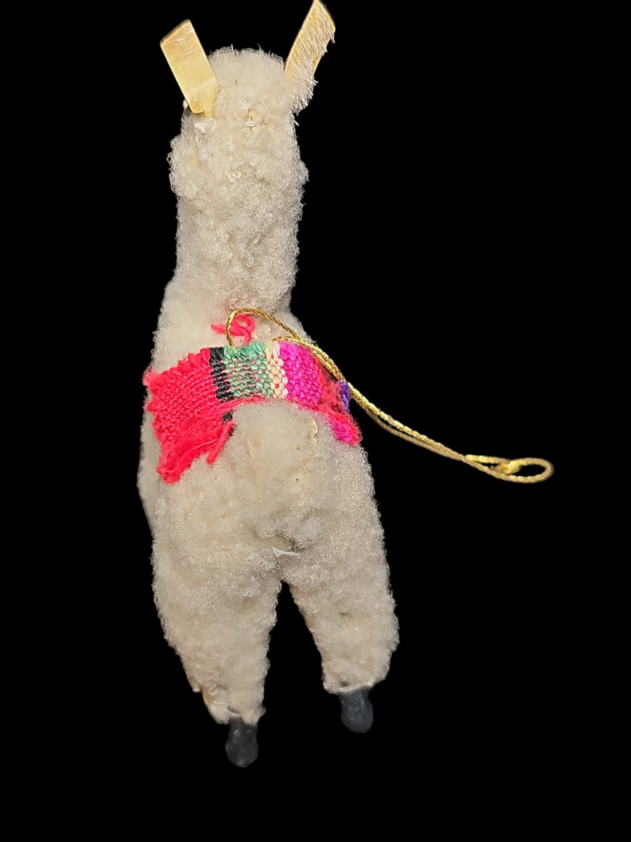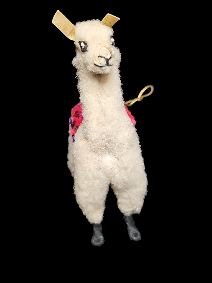 Add a touch of Andean charm to your collection with this vintage handcrafted Peruvian alpaca wool llama figurine. This unique piece is made from real alpaca wool over a wire frame, with handwoven textiles on its back and delicate handcrafted details.