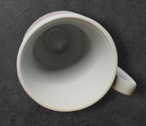 Excellent vintage condition with no chips, cracks, or crazing. Not sure why, but there is a wee hole drilled into the foot of the mug - maybe a promotional tag was looped through?