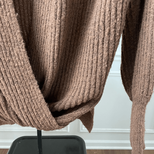 Max Studio Soft Chunky Cross Front Sweater Acorn Brown L