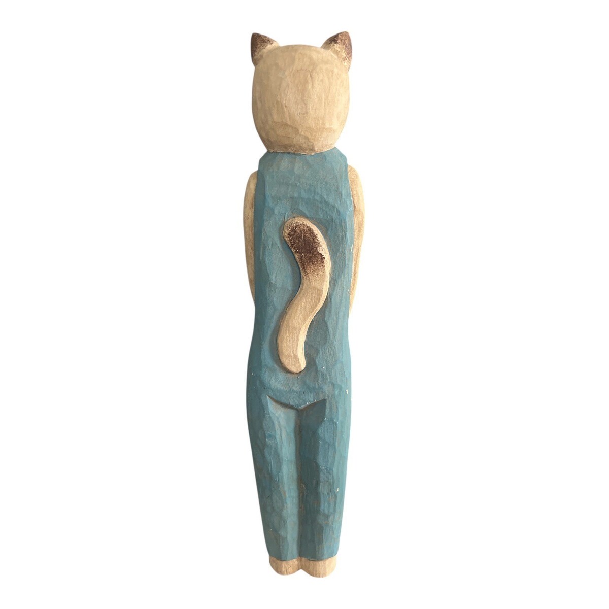 Vintage Hand Carved Wooden Cat Golf Caddy Folk Art Sculpture Signed Philippines