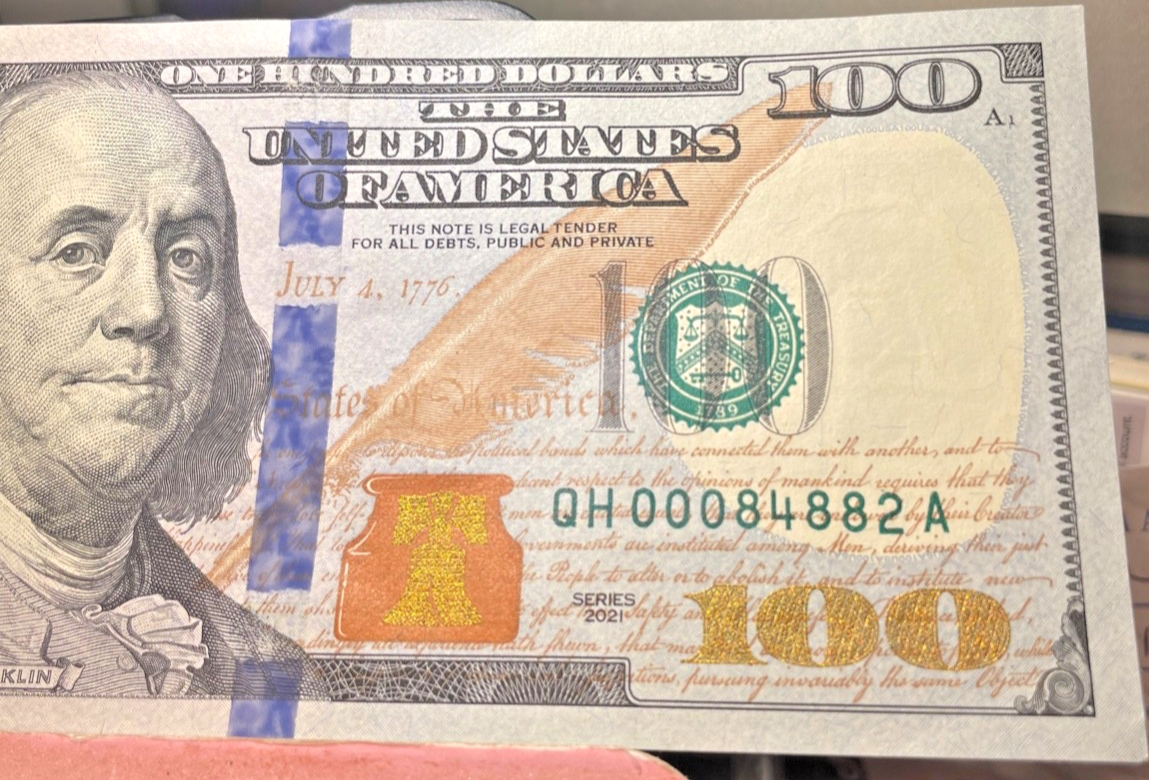 $100 bill - 2021 Low Serial # QH 00084882 A
