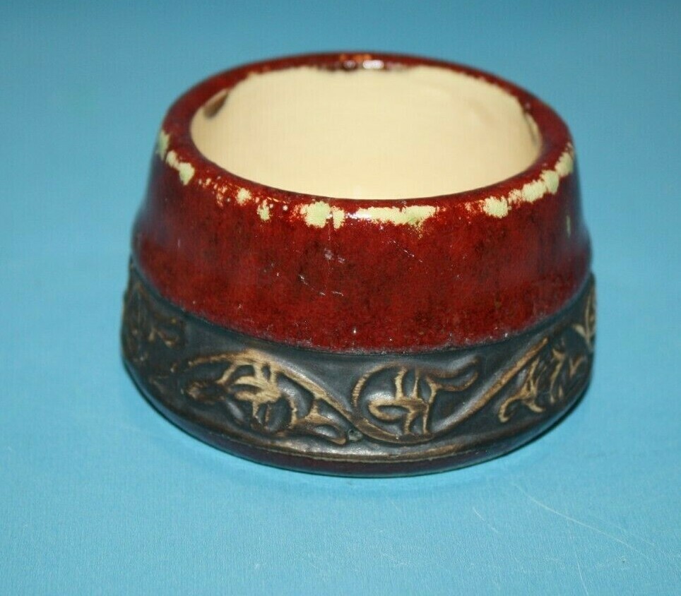 Pier 1, Shanghai, Tea Pot Cup with no handle, Red Asian Chinese, Earthenware, Wine, Brown Trim, Approx 2 inch