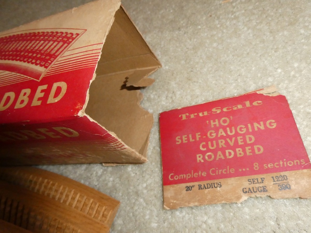 You are bidding on a vintage HO scale Tru Scale Models, pack of 8 wood curved roadbeds in box in the picture. 20" radius, complete circle. Each section is about 16 inches long. Appear unused in worn box, box missing one end flaps. Zoom in for details.