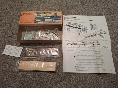 You are bidding on a 1950s era HO scale Silver Streak, wood and metal trim, C O box car with trucks, car kit, number 929-228, in open box in the pictures. Open box, no trucks, appears complete but could be missing some small trim and sold as such. Light box wear. Zoom in for details.