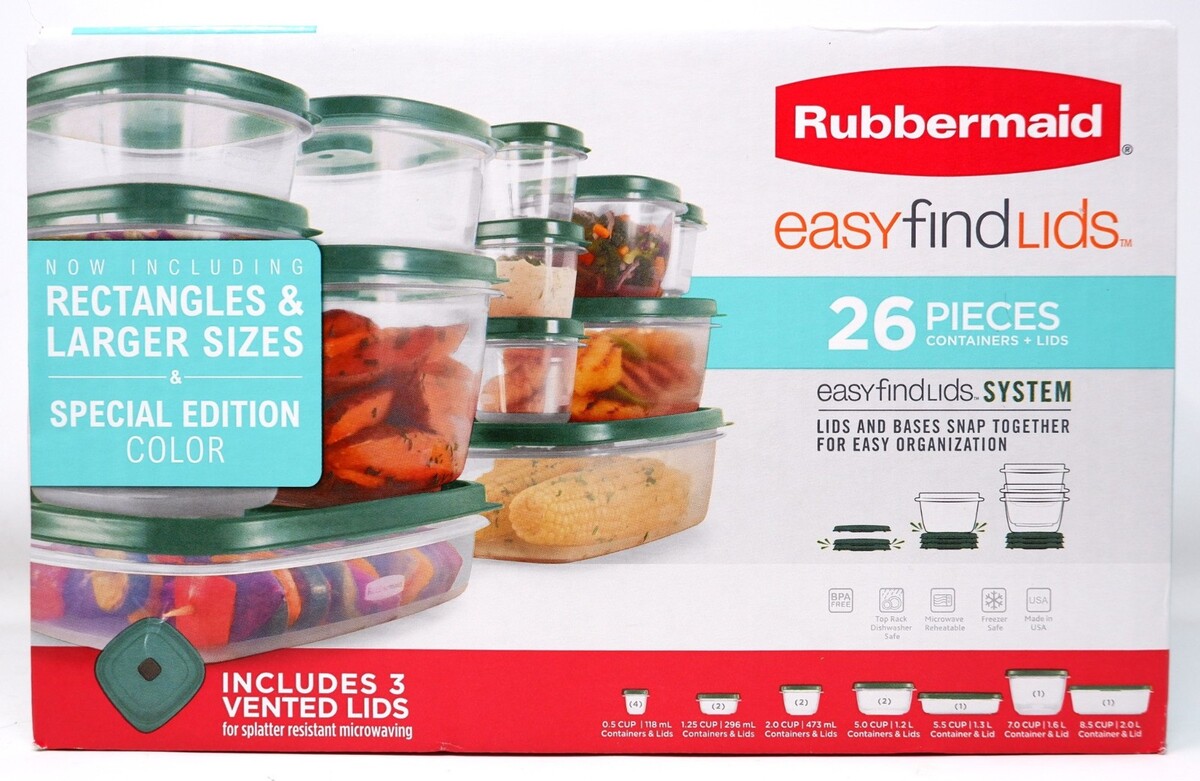 RUBBERMAID 2157957 26PC BLUE SPRUCE EASY FIND LIDS SYSTEM W/3 VENTED LIDS - NEW!