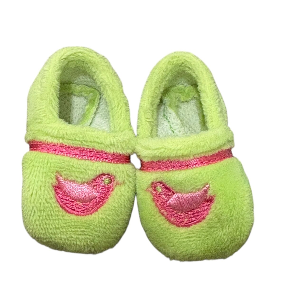American Girl Wellie Wishers Enchanted Garden Green Plush Slippers W/ Pink Bird