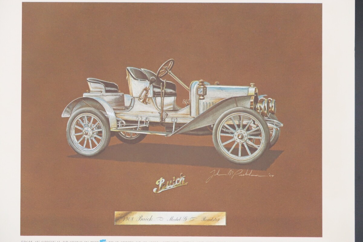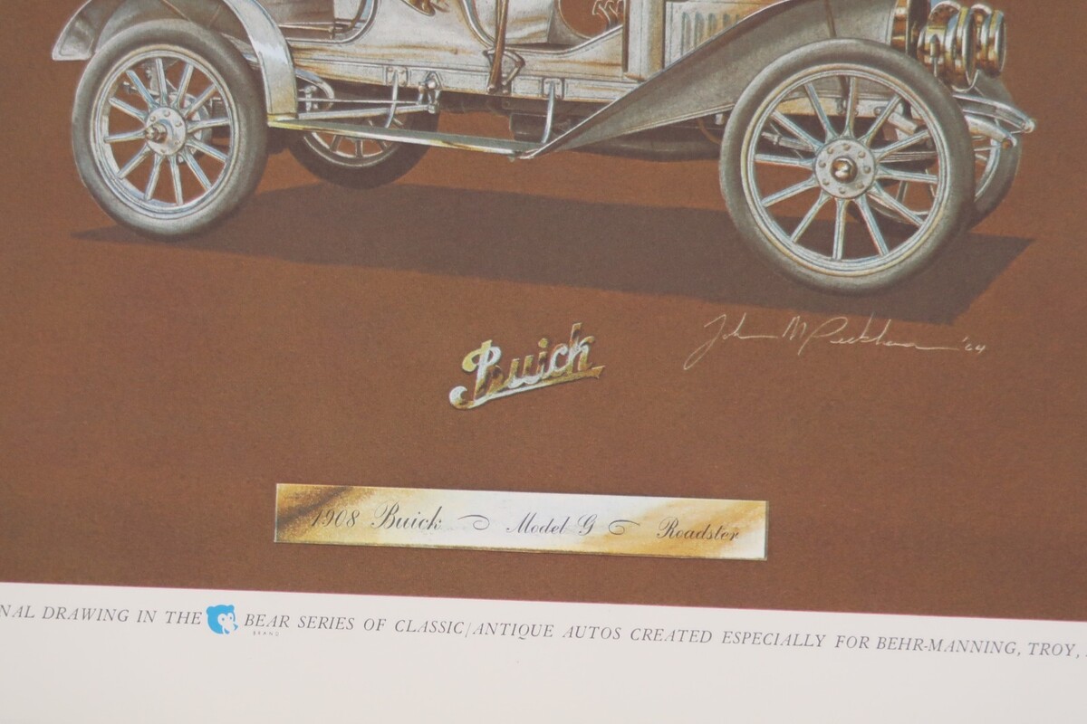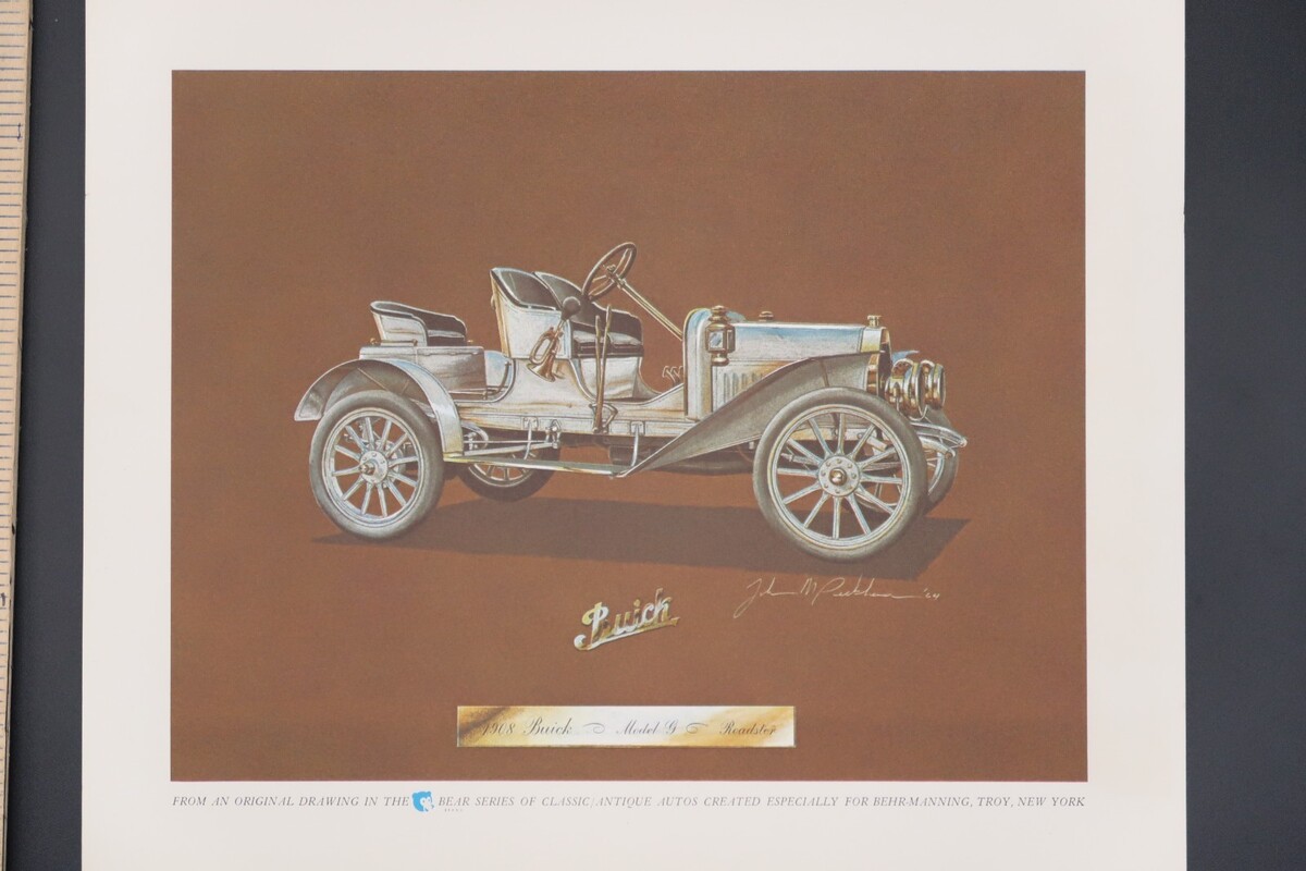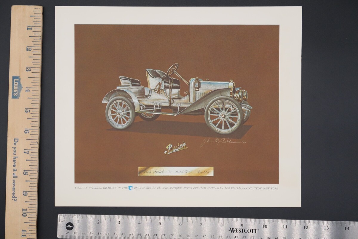 Vtg Bear Series Print Classic Autos Behr-Manning Troy NY 1908 Buick Roadster G