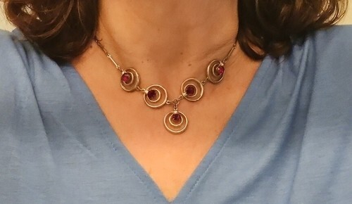 Vintage Necklace Ruby Red Stones Circular 16 Inches Long