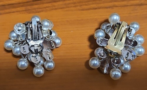 pearl and crystal cluster clip on earrings and 25 similar items