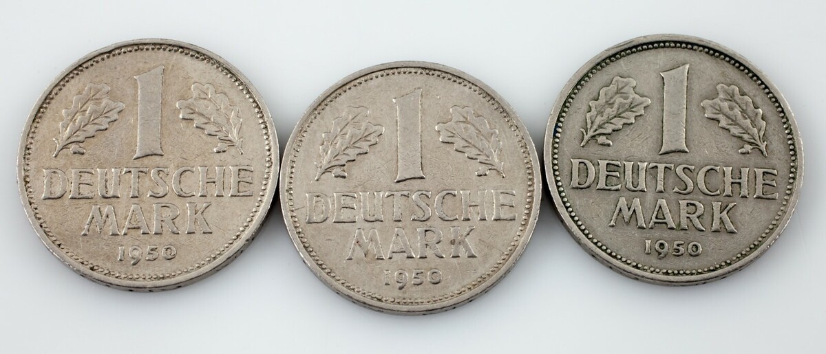 Lot of 3 1950 Germany 1 Mark Coins in XF Condition KM #110