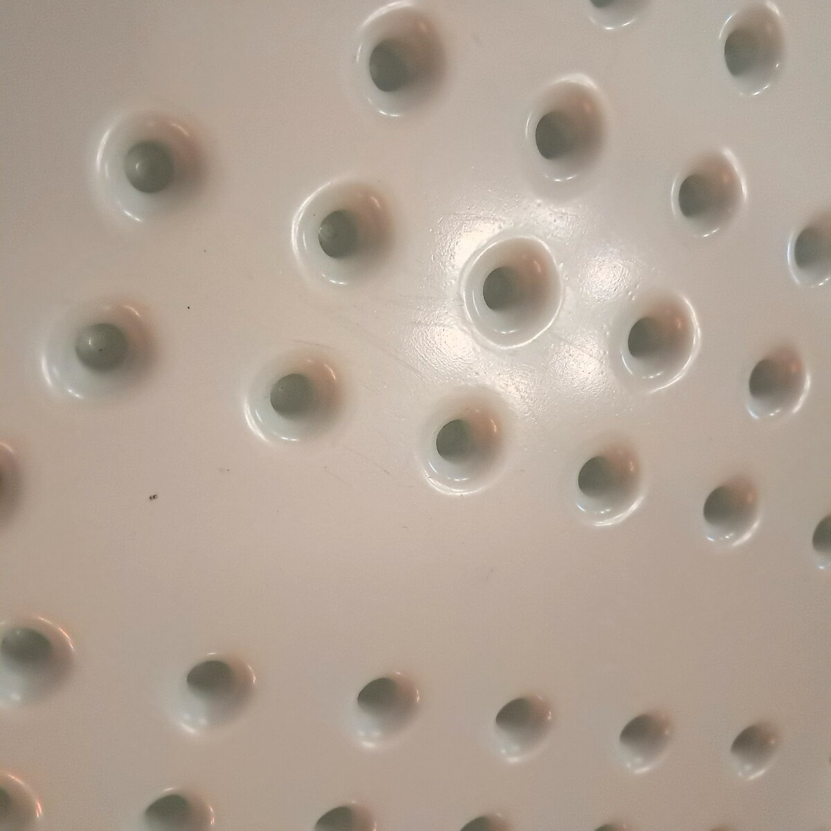 Off white/cream color. Hard plastic. Some scratches/marks from use. See pics