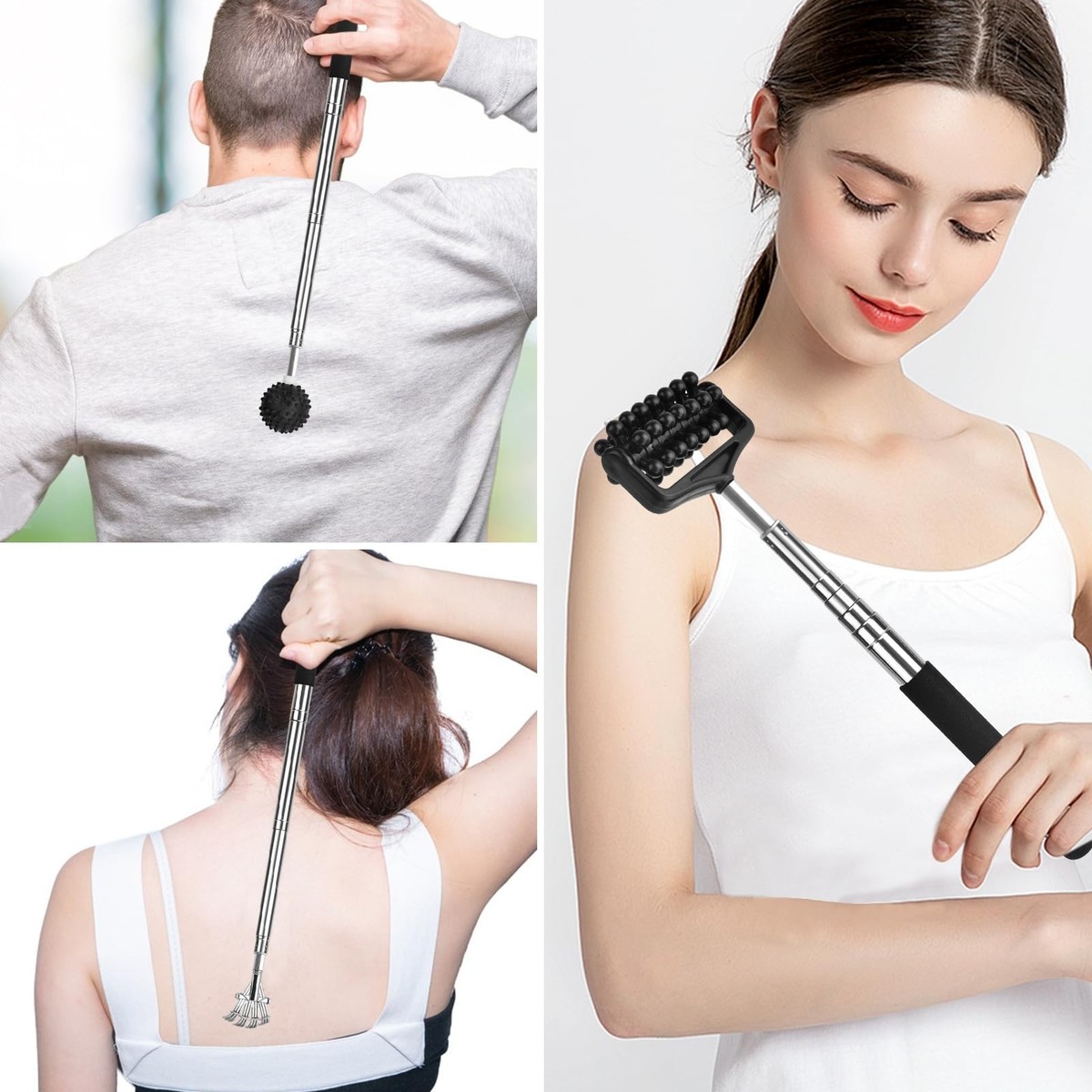 Back Scratcher Extendable for Men Women Telescoping Handle & 5 Heads Xmas Gift