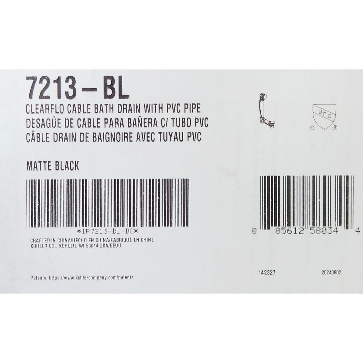 Kohler 7213-BL Clearflo Cable Bath Drain with PVC Tubing - Matte Black